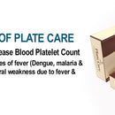Plate Care is a natural Ayurvedic medicine designed to boost platelet count and enhance overall blood health. It combines powerful herbs like Papaya leaf Extract, Giloy, etc, to support the body's natural platelet production, improve immunity and recover from illnesses that deplete platelets, such as dengue fever.