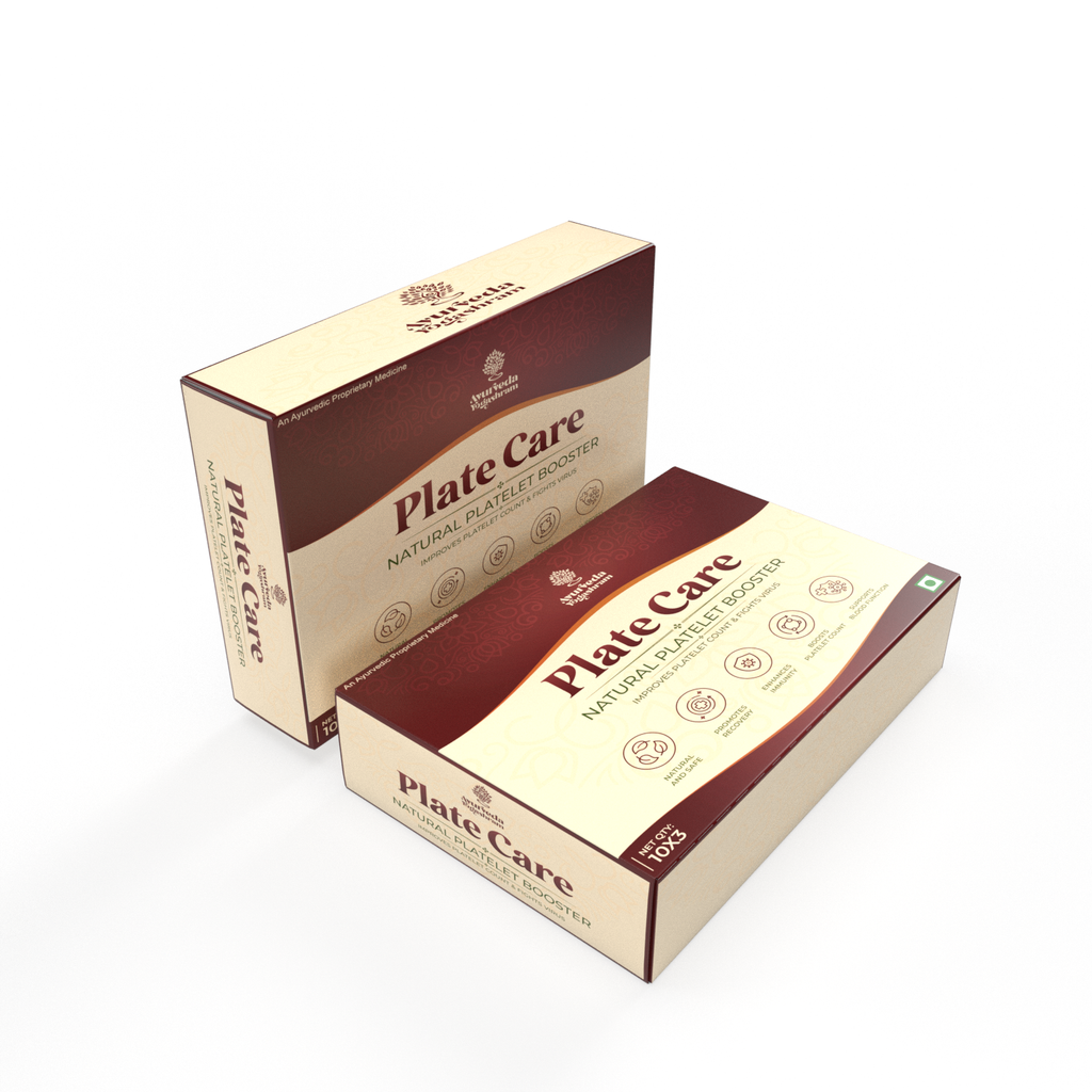 Plate Care is a natural Ayurvedic medicine designed to boost platelet count and enhance overall blood health. It combines powerful herbs like Papaya leaf Extract, Giloy, etc, to support the body's natural platelet production...